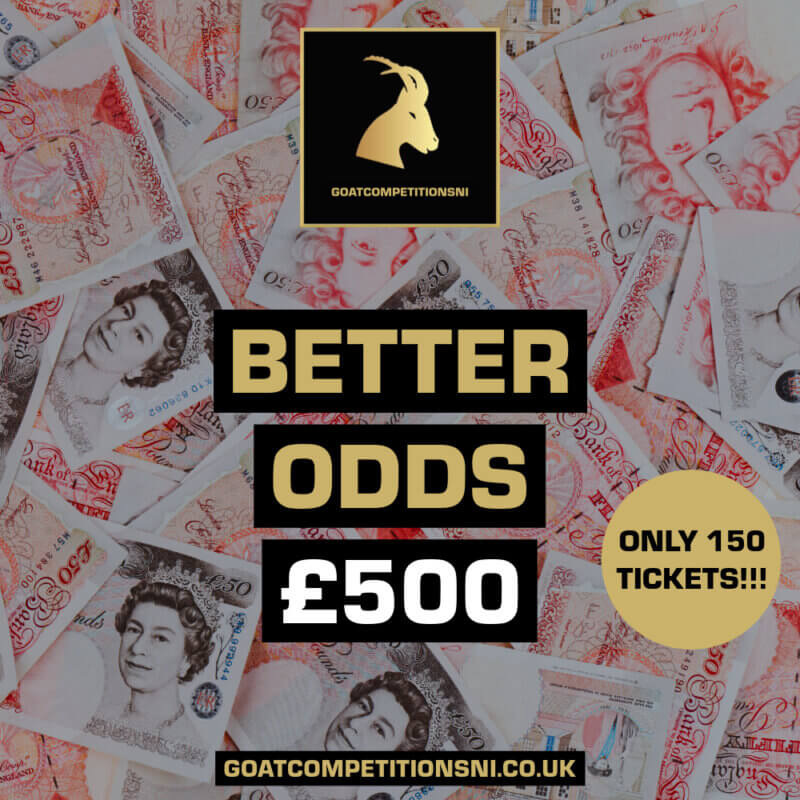 BETTER ODDS £500 CASH – ONLY 150 TICKETS AVAILABLE!!