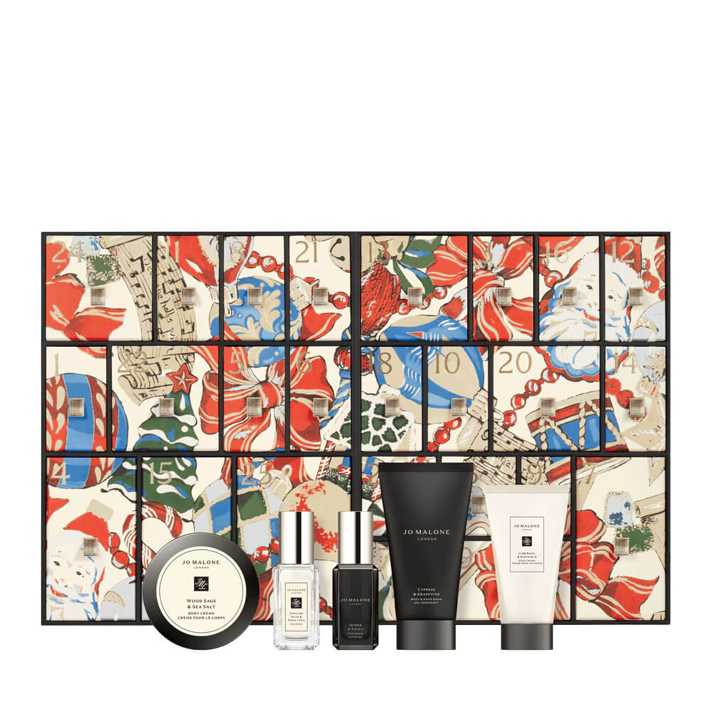 Get set for Christmas with Jo Malone. Twenty-five scented surprises await behind its decorative doors. Includes a selection of timeless and seasonal colognes, miniature candles and bath & body favourites in smaller sizes, as well as a Travel Candle and a 30ml festive fragrance.